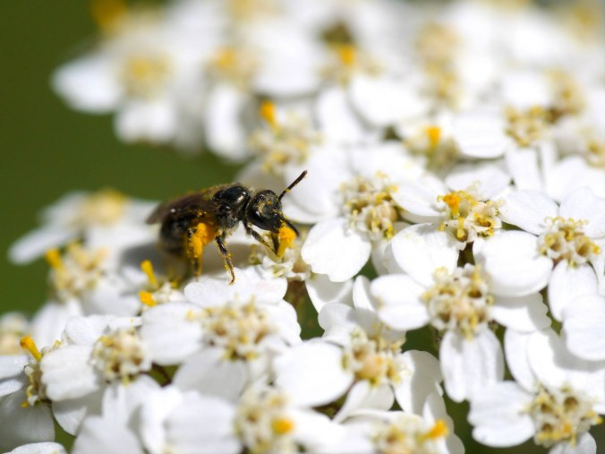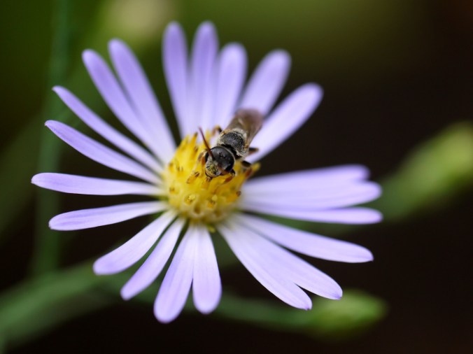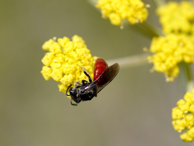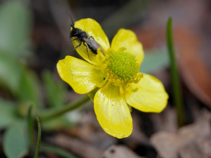 Andrena is one of the world’s largest genera of bees. There are probably only a few people in all of North America who possess the specialized knowledge necessary to make a reliable species identification. Andrena bees are remarkably cold tolerant and are some of the first small bee species to frequent flowers in the spring, although this little guy was clearly struggling with the chilly morning air.